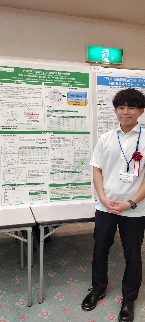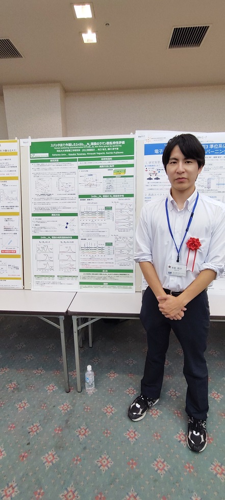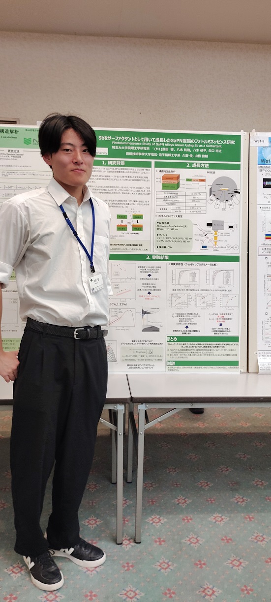 M1相良君が「GaPN混晶のアップコンバージョン発光へのバンドギャップエネルギーを超える励起光の影響」のタイトルで発表を行いました。